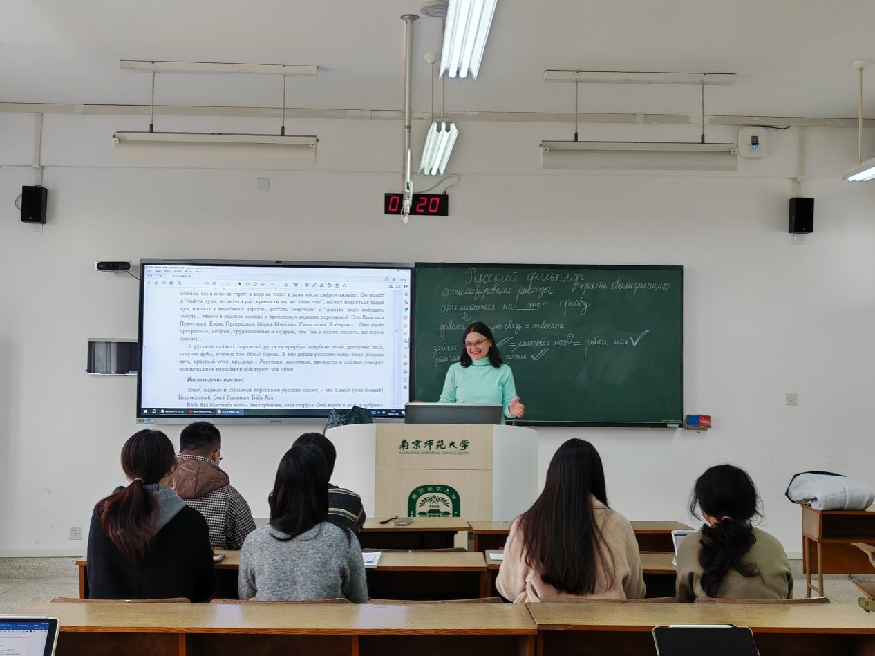2024年12月4日,俄语教学专家尤利娅在南京师范大学学正楼为俄语系学生开设讲座。本次讲座的主题为“俄罗斯民间故事文化”。讲座中尤利娅通过展示相关视频、图片,为同学们介绍了俄罗斯民间故事文化传统,并与学生积极互动。讲座取得圆满成功,学生收获颇丰。