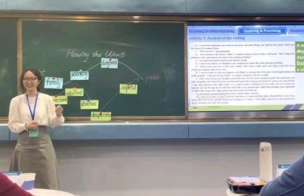 本次素质风采展示活动分为教学展示和才艺展示两个环节。上午场参赛选手们精心设计并制作了精美的教案和幻灯片,呈现了一场场精彩的英语课堂教学展示。展示活动的评委既有高校外语教师,也有中学英语教师,还有中学英语教研员,从不同的视角对选手们的教学表现进行全面评估。李响同学和杨于萱同学分别就记叙文与说明文进行了详细、透彻的分析,全面贯彻英语学科核心,在丁建宁老师、徐丹老师一遍遍打磨、完善之下,两位同学尽显师范生风采,展现新世代教师素养。