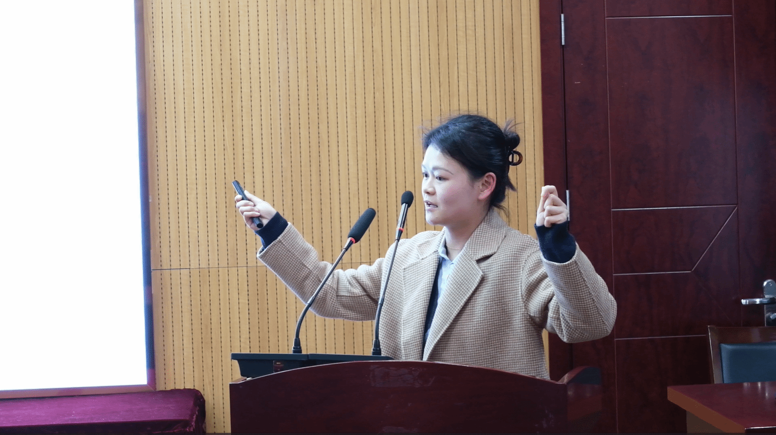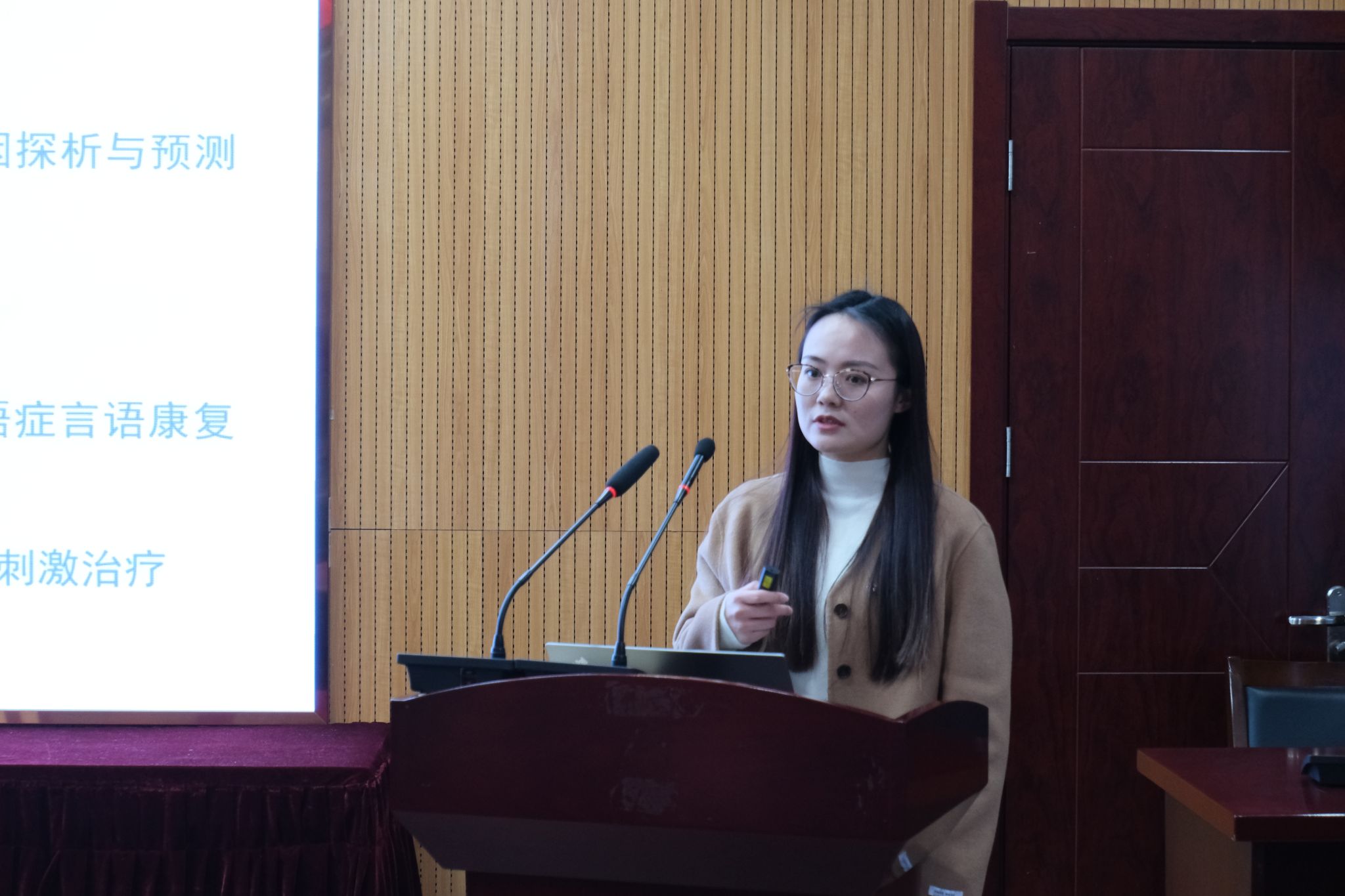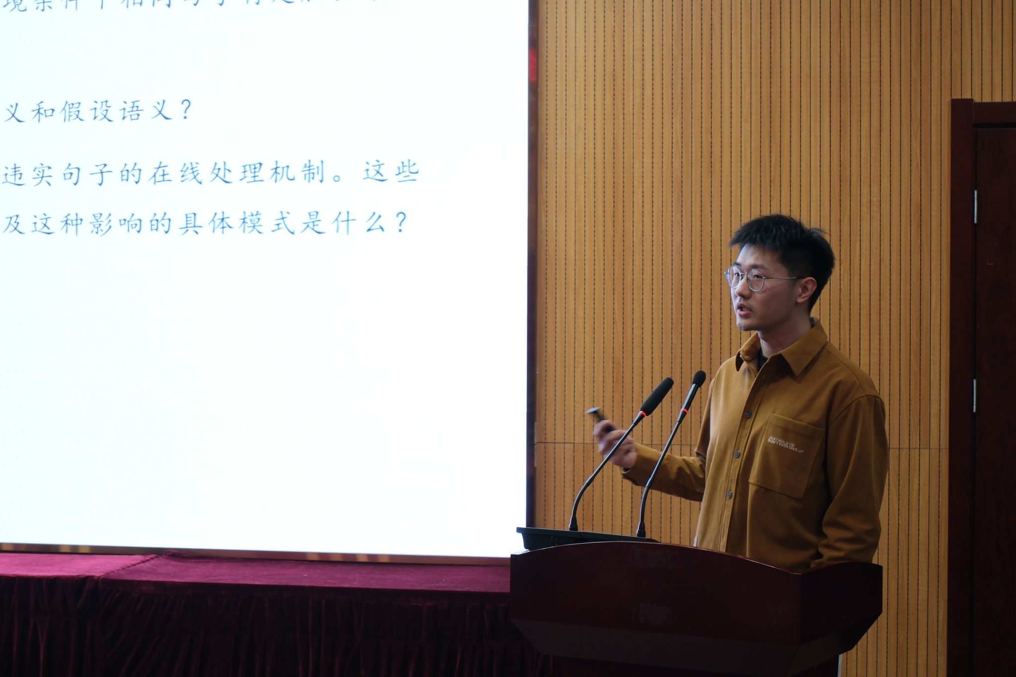 博士研究生张惋瑜围绕“汉语双宾构式理解中转移方向的心理模拟研究”展开汇报,通过句子启动范式和眼动实验,发现汉语双宾构式理解存在对物体运动方向的心理模拟,为语言理解的认知机制研究提供了新视角。