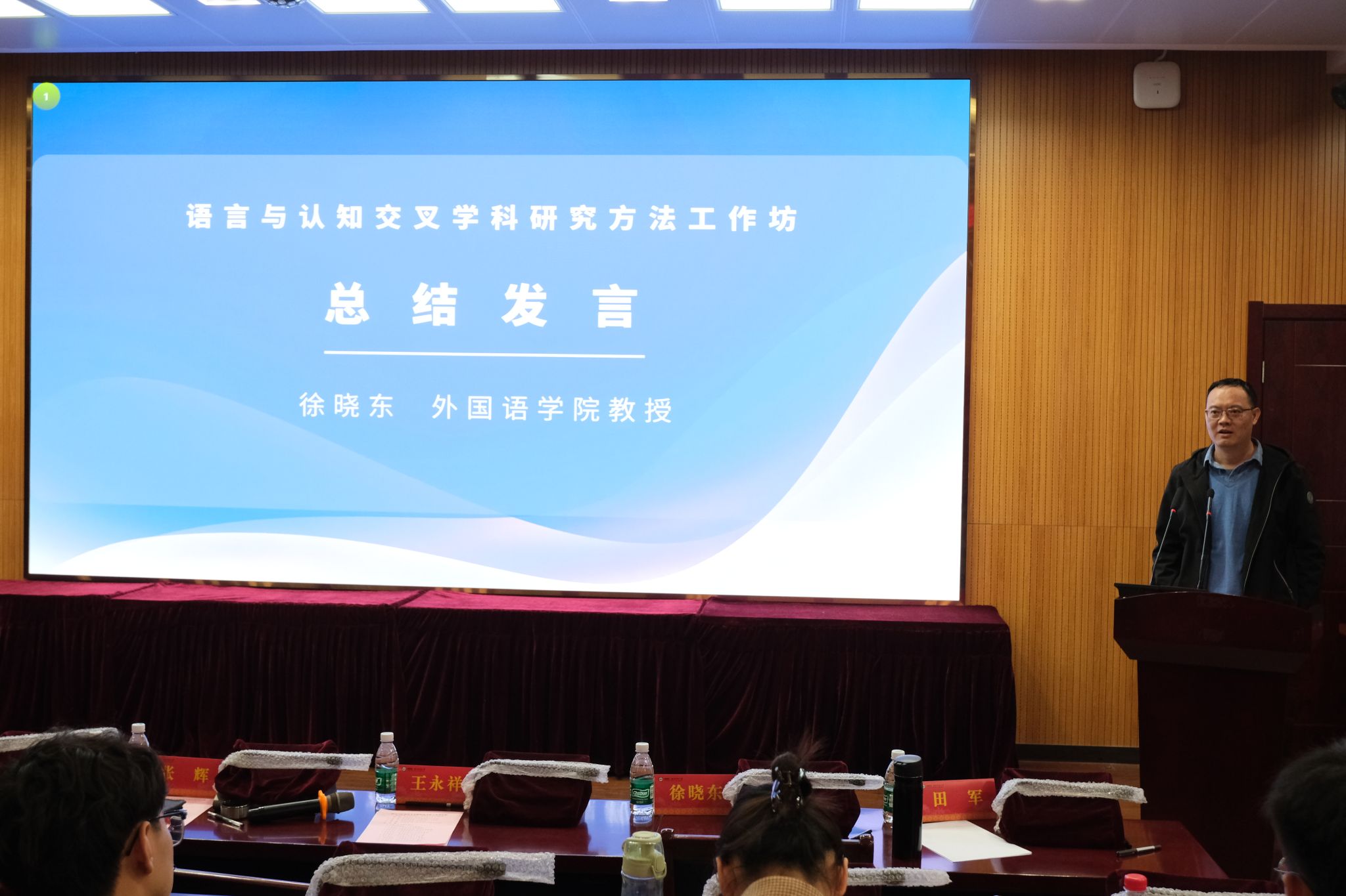 博士生导师徐晓东教授进行总结发言。徐晓东强调,跨学科研究需注重方法论融合,鼓励师生善用实验室技术与大数据分析,推动语言认知研究向纵深发展。他呼吁青年学者持续关注理论与技术的双向互动,不断探索创新,为学科发展贡献更多力量。