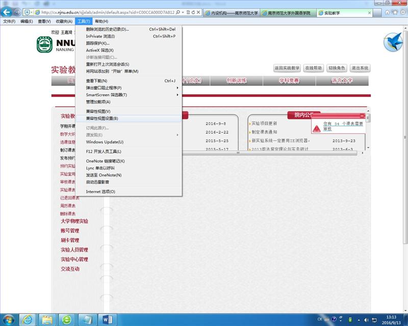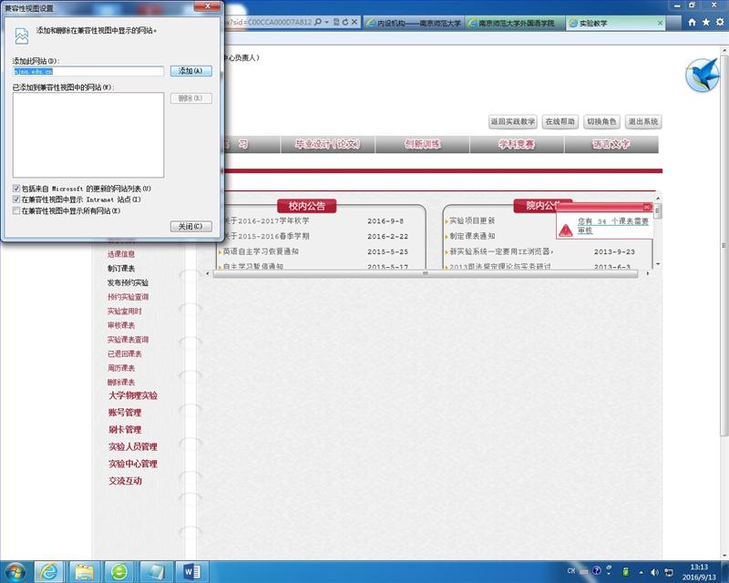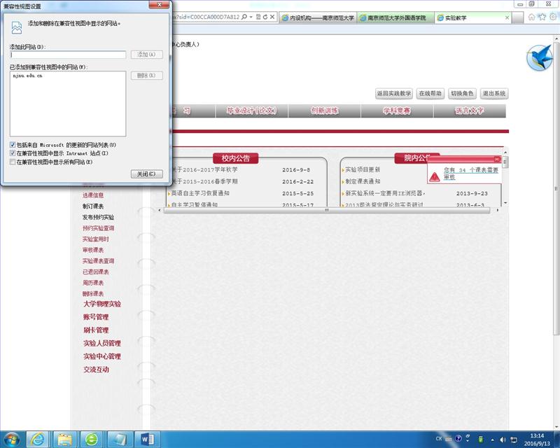 4.关闭小窗口。此时兼容性视图已经设置好,实验教学网站的内容可以完全显示。