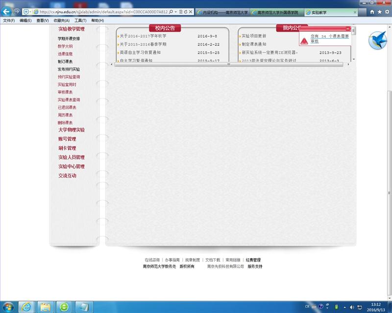 各位老师,2017-2018学年第一学期网上制定实验室课程课表和填写实验室课程开课记录的工作已经启动。地址为: