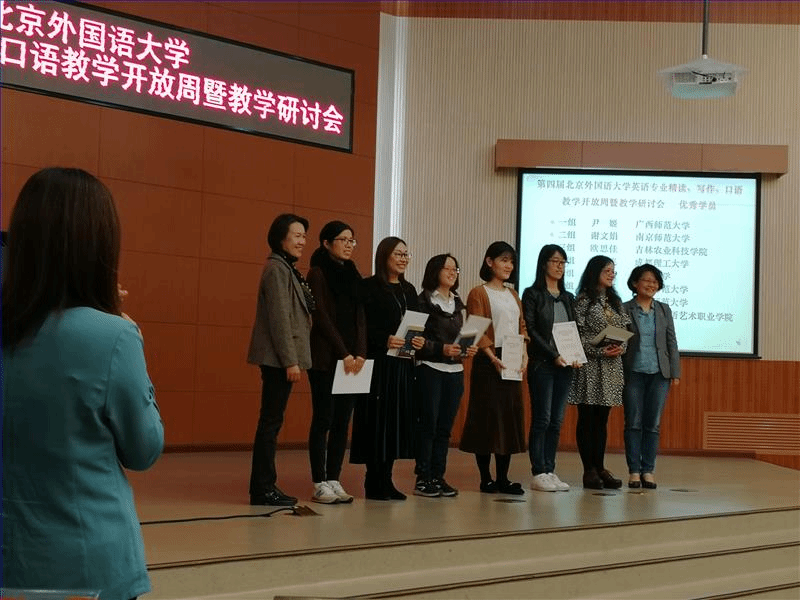 教师谢文娟作为教师代表展示了精读课程的说课,以严格的教学设计、新颖的课堂活动与深入的思辨讨论,取得了同行与专家的一致赞赏,并被评为本次研讨会仅有的8名“优秀学员”之一。