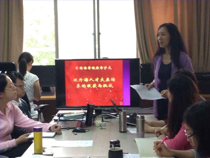 在外院教师休息室成功举办了以双外语大类培养中的收获与挑战为主题的教学沙龙,教学沙龙由院长助理田朝霞老师主持,参加者有省教学名师辛斌、督导王东新,以及外院的各语种教师。