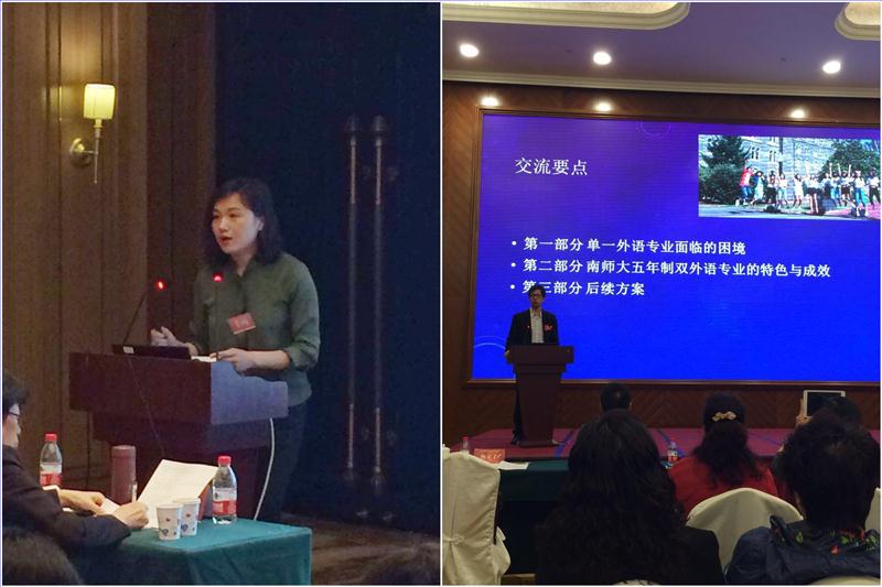 严志军教授在专题论坛中就南京师范大学五年制双外语专业大类培养体系的探索与实践作了汇报交流。他指出,作为教育部学科排名连续两轮并列第七位的学科,南京师范大学外国语言文学学科所辖的8个语种专业和1个翻译专业进行了长达十年的“五年制双外语大类培养体系”改革,从2002年至2012年逐步完成了所有语种和专业的“英语+非通用语种”或“非通用语种+英语”的强化培养改革,又经过5年的实践检验,形成了多元融合、双向互动、多层交叉的优势和成果,满足了社会经济发展需要,尤其是在中国参与全球治理形势下对新型国际人才的需求,提升了学生的学业和就业竞争力,也对国内高校外语教学发挥了引领和示范作用。