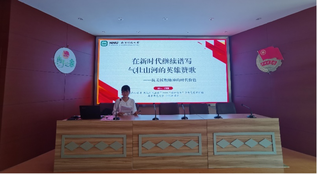 在党的领导下,在全国人民的共同努力下,我们的国家实力有了极大的提升,国际地位也不可同日而语,先辈们的奉献和牺牲为我们创造了如今和平的发展环境,但学习抗美援朝精神绝不仅仅是为了单纯的缅怀先烈、牢记历史,而是有更为迫切和必要的价值。宣讲员邵蓓蓓结合中国国情以及当今世界局势,指出新形势下国家之间的战争不再局限于武装冲突,因此全体人民必须牢记抗美援朝精神,面对将来有可能的一系列挑战。最后,她结合抗美援朝以来中国的发展阐述了抗美援朝精神的新时代价值。
