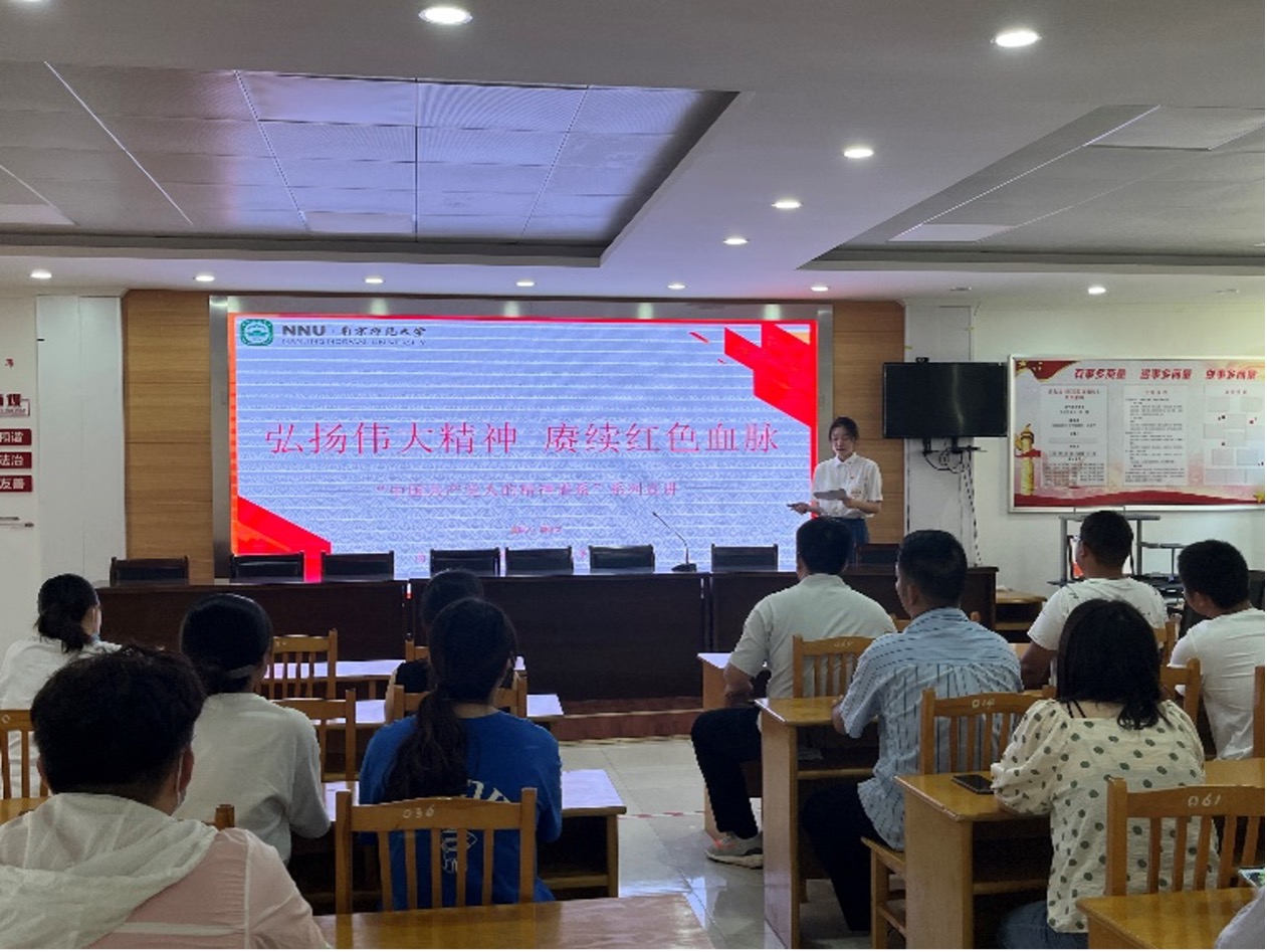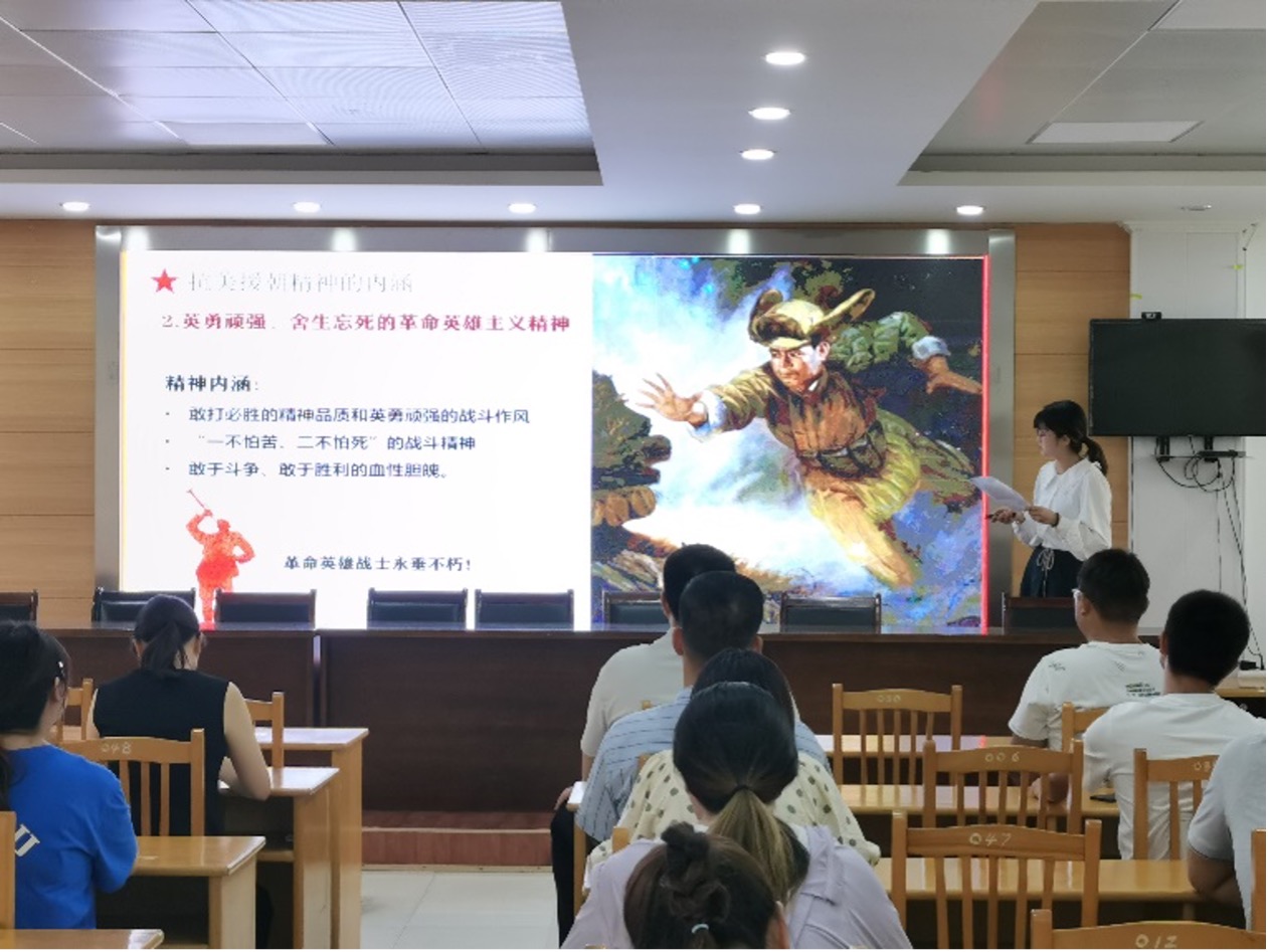 首先,青年党员宣讲团的邵蓓蓓同学进行了抗美援朝精神的主题宣讲。邵蓓蓓同学结合历史,举出激荡时代里鲜活的例子,强调了当代青少年学习抗美援朝精神的迫切性和重要性。最后,她向同学们发出号召:伟大抗美援朝精神跨越时空、历久弥新,必须永续传承、世代发扬。