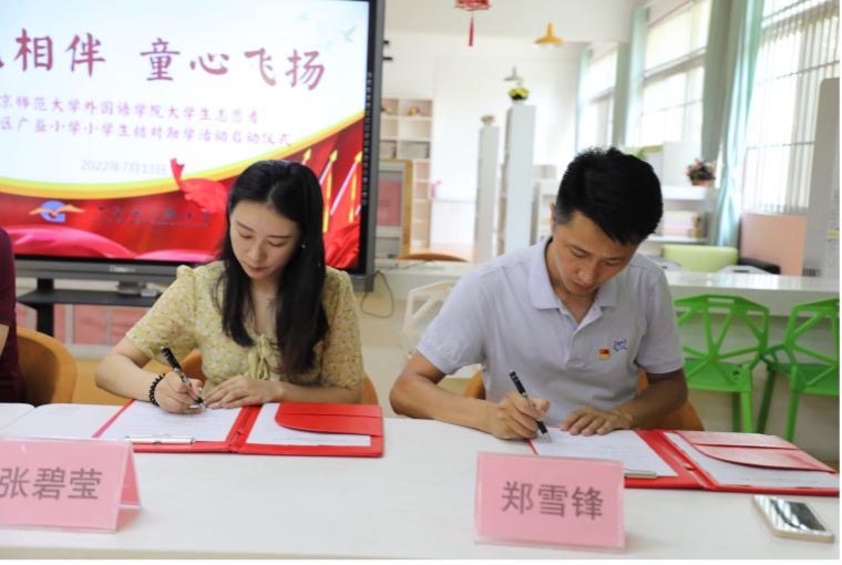 党委副书记田军、团委书记张碧莹、辅导员韩露健、六合区委教育工委委员卢炜、六合区广益小学校长郑雪峰、六合区广益小学部分师生以及外院大学生志愿者代表出席签约仪式。仪式由博彩网址大全
