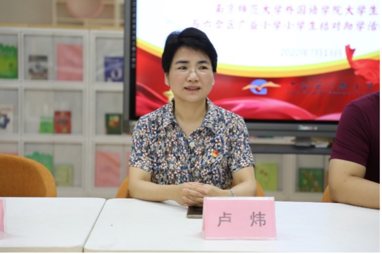 六合区委教育工委委员卢炜也代表六合区委教育工委、六合区教育局致辞,她指出:六合区教育局十分重视本次活动,加强本区基础教育学校与本市高校通力合作,有利于整合协调市内教育资源,将各个教育阶段连成整体。卢委员表示,此次志愿服务基地的落成既是一次尝试,也是一次突破。在讲话的最后,她殷切勉励广大同学坚定信念、刻苦求学,并语重心长地嘱咐大家珍惜韶华、胸怀抱负,系好人生中的第一粒扣子。