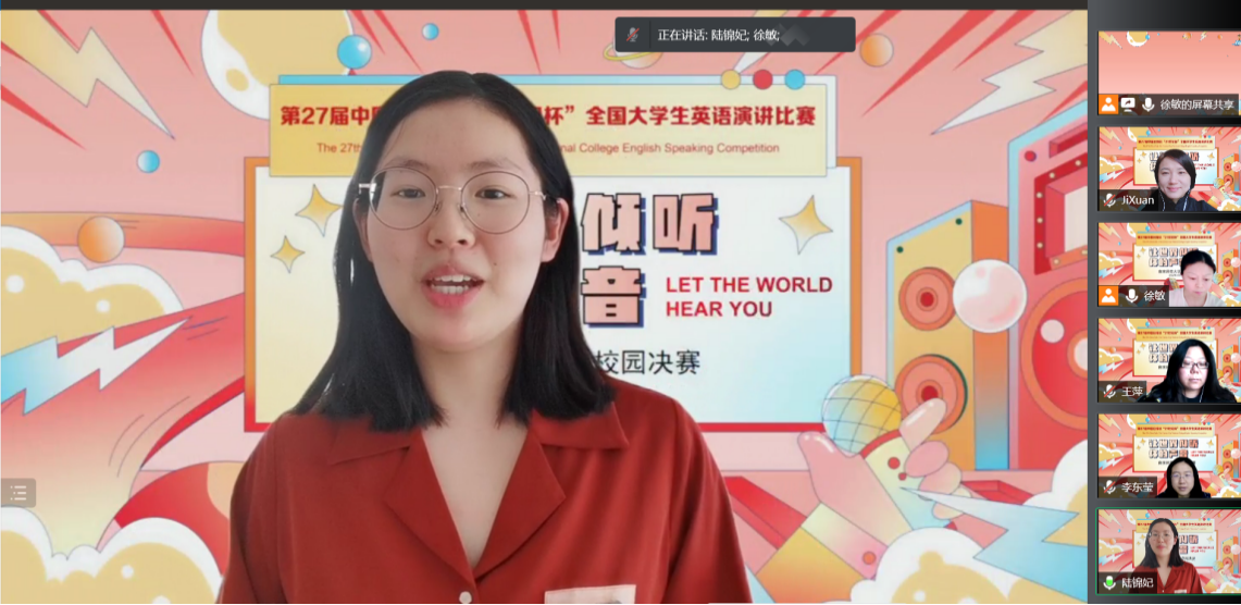 近日,2020级英语(师范)专业本科生陆锦妃同学在第27届中国日报社“21世纪杯”全国大学生英语演讲比赛全国总决赛中,与来自全国30余个赛区的70余名选手同台竞技,凭借扎实的基本功和地道流畅的表达,勇夺一等奖。