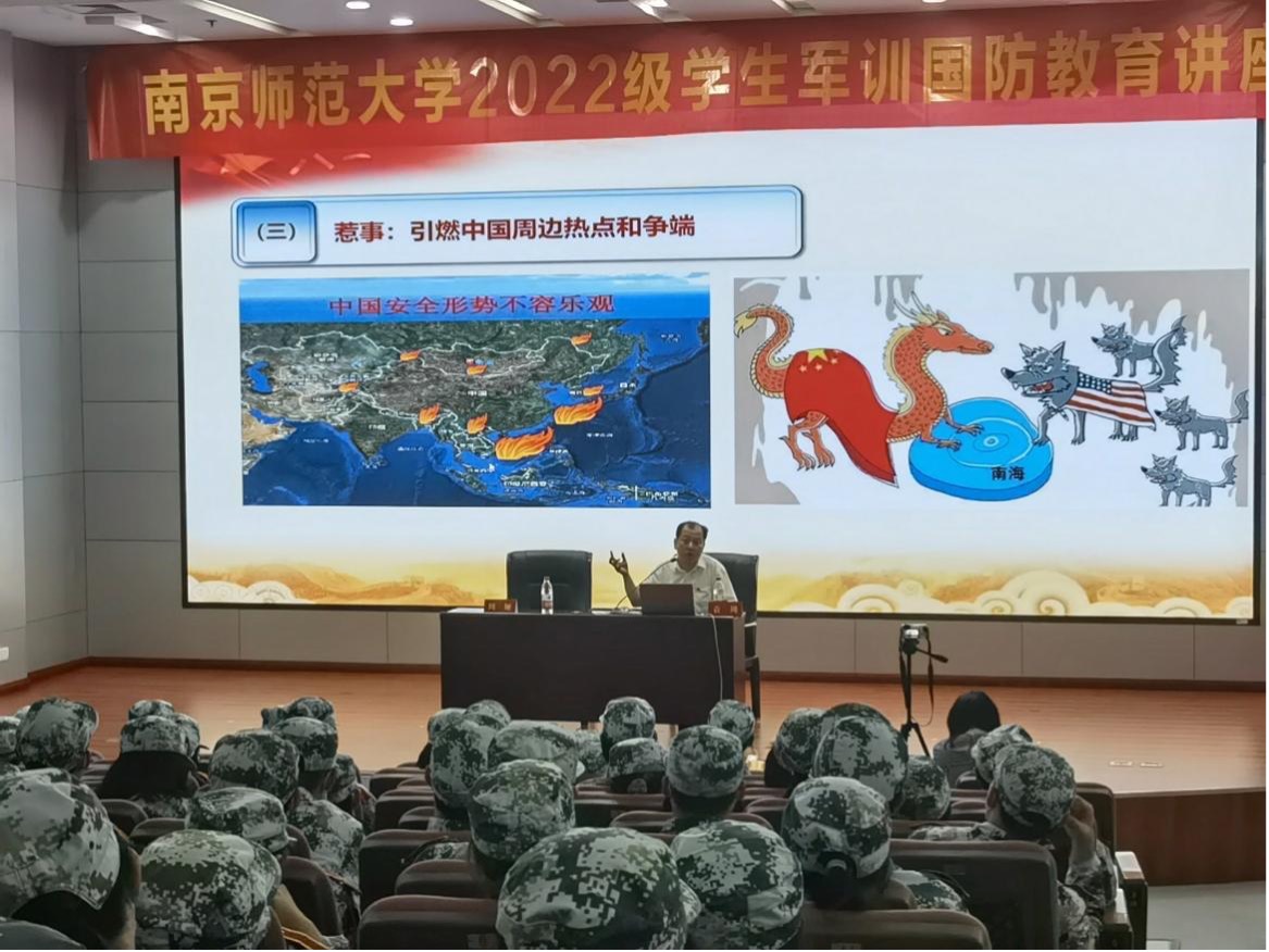 9月16日南京师范大学以“百年大变局下的周边安全形势”为主题举办了新生军训国防教育讲座。