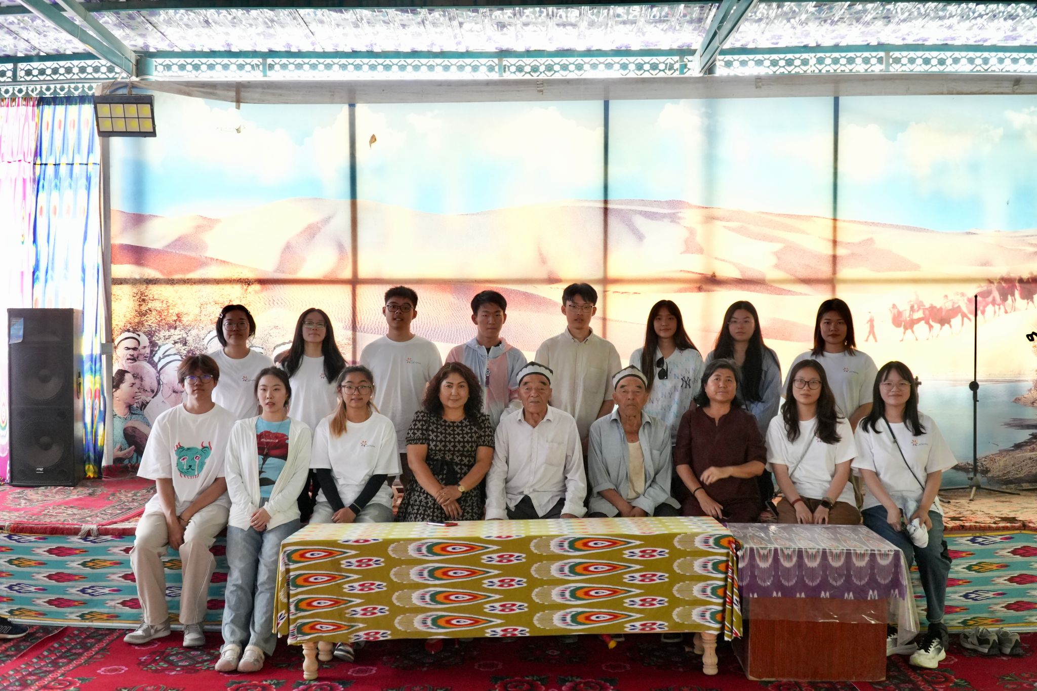 在接下来的几天里,实践团成员深入农村展开了专题调研。他们采访并录制了五位刀郎木卡姆艺人的口述史,这些宝贵的录音不仅记录了艺人们生动的个人经历,更承载着刀郎木卡姆的深厚历史与情感见证;通过参观刀郎展览馆,成员们系统地学习了刀郎木卡姆的历史渊源、表演形式及其在当代社会的传承现状,帮助他们构建起对这一非物质文化遗产的立体认知。实践团还亲自拜访了多位刀郎木卡姆领域的重量级人物,其中包括国家级非物质文化遗产传承人玉素因·亚亚和艾山·亚亚,以及地区级传承人帕提古丽老师、卡龙琴大师艾买尔·依米尔等。通过与这些大师面对面的交流,实践团成员们不仅收获了关于刀郎木卡姆技艺与精神的真知灼见,更被大师们对艺术传承的执着与热爱所深深感染。在刀郎木卡姆传承人古再丽努尔老师家,古老师回顾了自己的艺术生涯,讲述了从初学乍练到技艺纯熟的心路历程,每一个故事都蕴含着对刀郎木卡姆的无限热爱与执着追求。古老师对刀郎木卡姆的未来充满了前瞻性的思考,对未来如何更好地保护和传承刀郎木卡姆提出了独到见解。