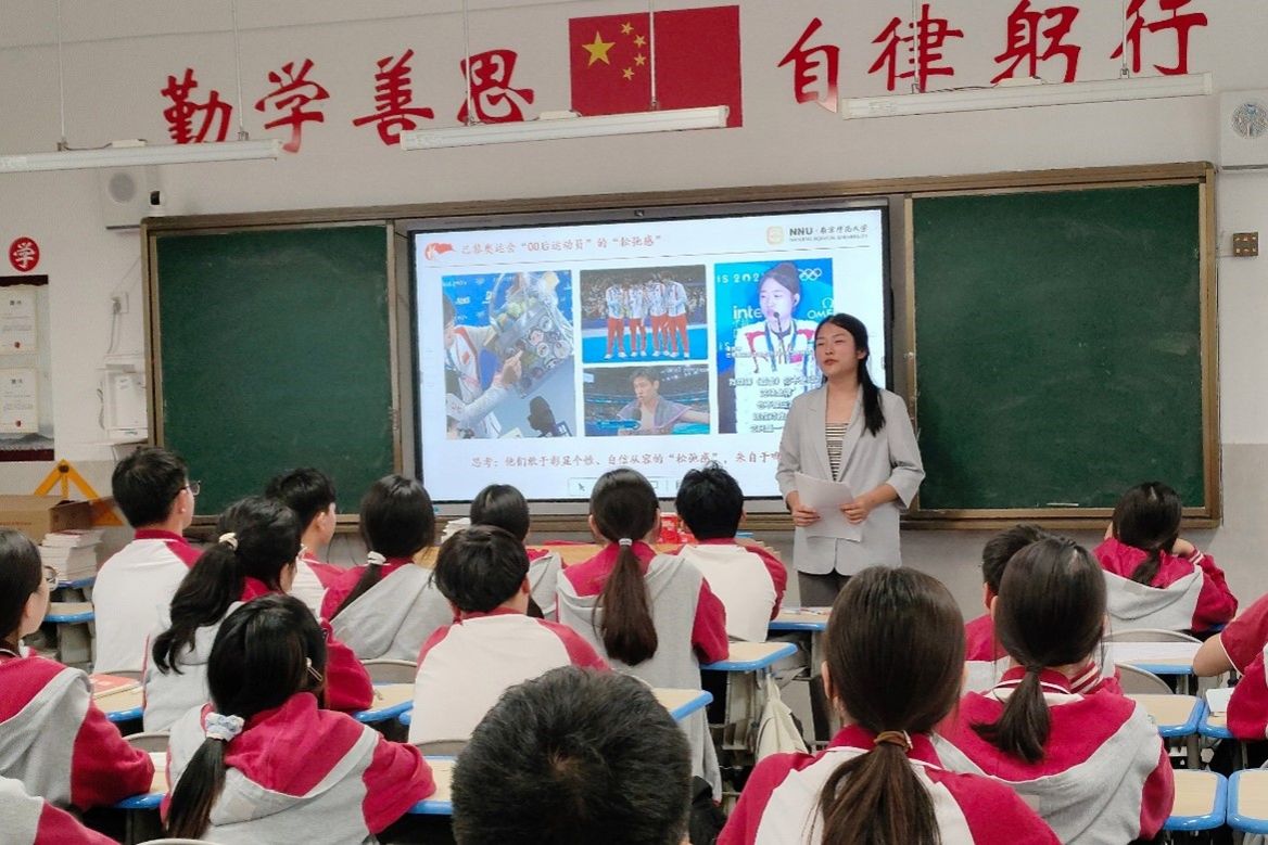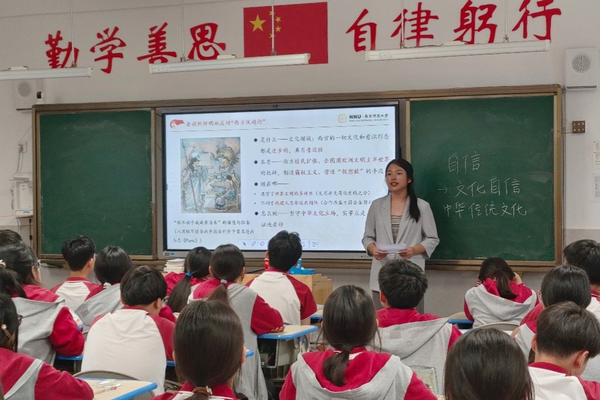 凝心聚气淬思想,培根铸魂育新人。团队前往江苏省邳州市英华路实验学校、泰兴市第一高中、南京市阳光里社区进行团课宣讲,带来了“文化自信树底气,守正创新促发展”主题团课。由巴黎奥运会“00后运动员的松弛感”引入,以“中华优秀传统文化的传承、创新、国际传播”为线索,援引中式卡点变装、国风动漫等多个案例,带领青年解码“文化自信”。团队成员紧密结合习近平文化思想的内容,深入浅出讲解了“两个结合”中“第二个结合”的深刻内涵,呼吁青年自觉做中华文化的弘扬者、传播者、建设者,彰显新时代青年的文化自信和使命担当,为铸就中华文化新辉煌贡献青春力量!