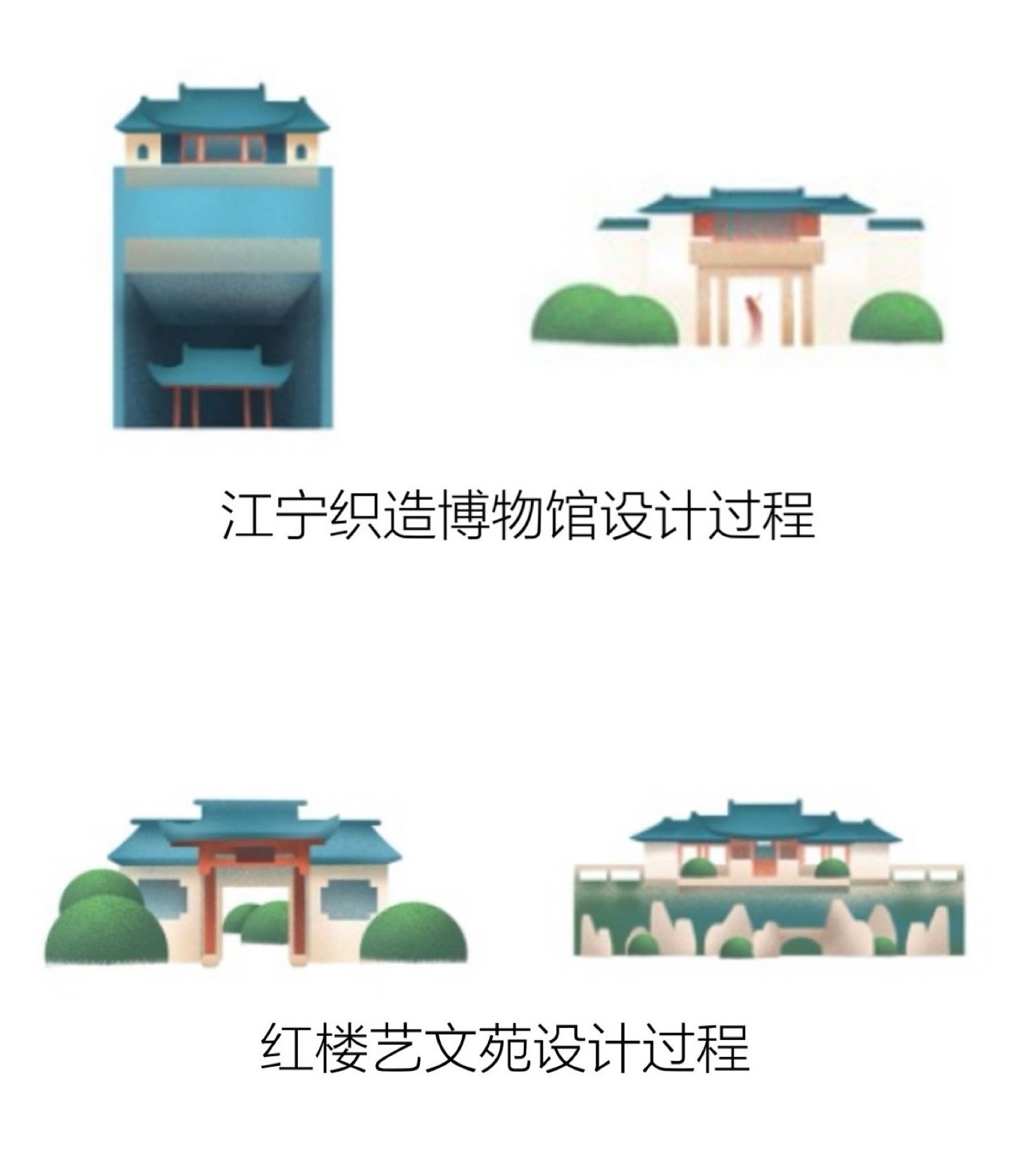 南京文学地图:通过大量搜集资料、实地考察等方式抓取建筑特征、领会文化内涵,初步设计出地标形象后,再不断沟通修改,直至定稿。所有地标设计完成后,根据实际比例,进行一定的艺术加工,形成文学地图。