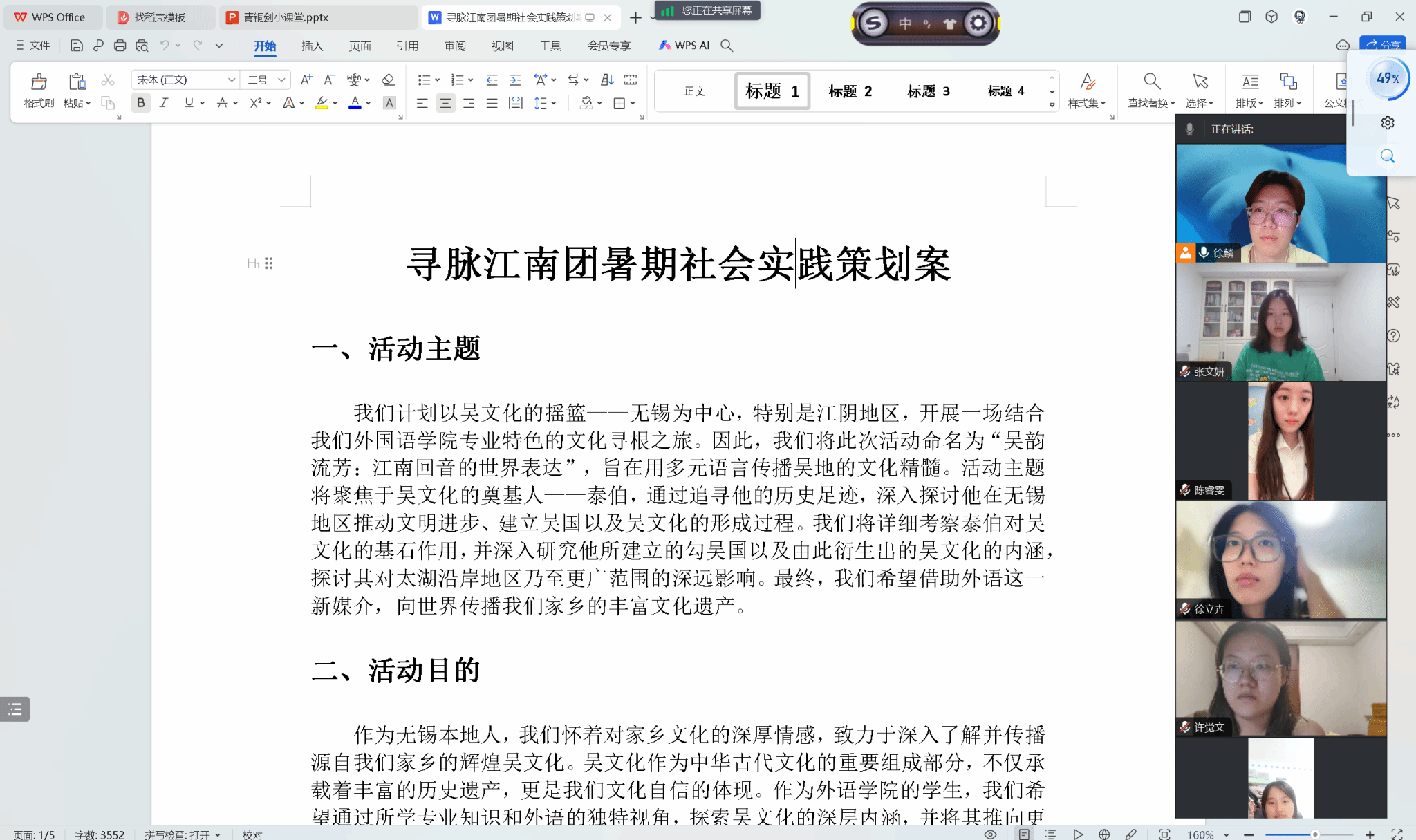 7月14日,寻脉江南团通过视频会议召开了首次集体会议,成员们围绕活动主题“寻脉江南:吴文化的传承与弘扬”进行了热烈讨论,明确了各自的责任与想法,为后续的实地考察与文化探索奠定了坚实的基础。